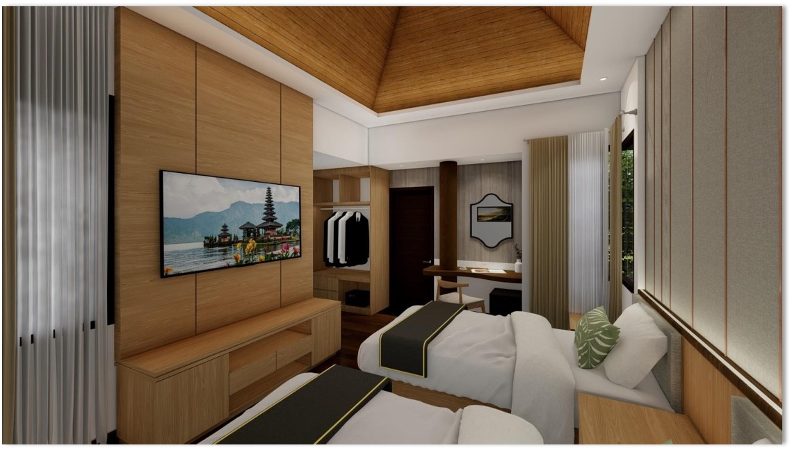 Nikmati kenyamanan ruang yang lebih luas di Cottage berukuran 36 m², pilihan ideal bagi tamu yang menginginkan privasi lebih dalam suasana resort yang asri. Didesain dengan sentuhan modern dan detail yang menenangkan, cottage ini memberikan pengalaman menginap yang memadukan kenyamanan hotel dengan kehangatan hunian pribadi.