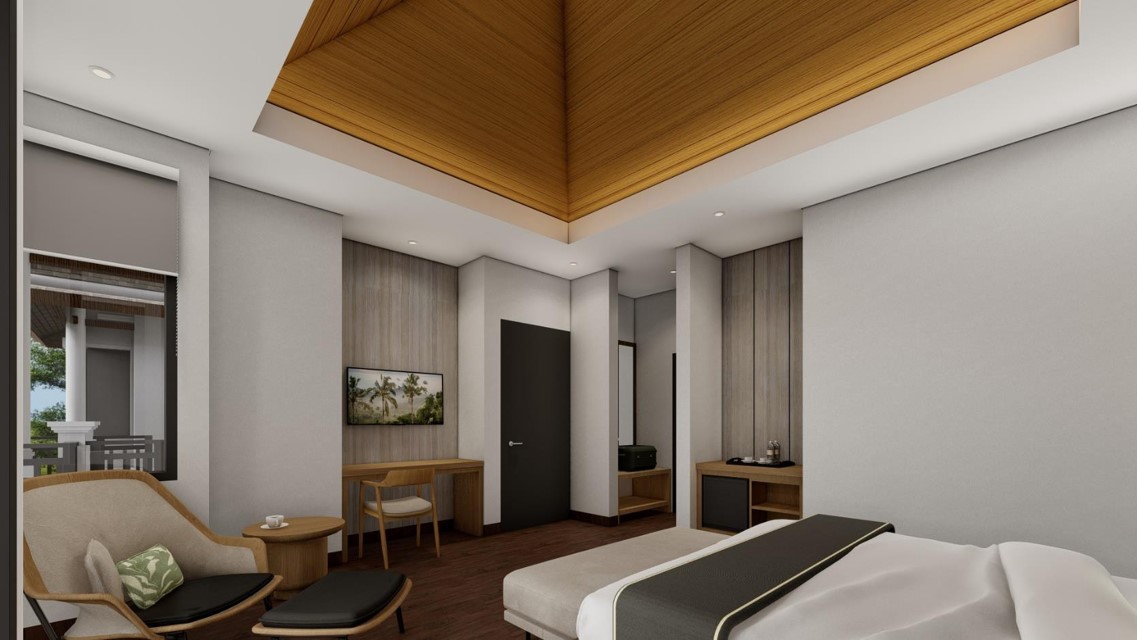 Nikmati pengalaman menginap yang penuh kenyamanan di tipe kamar 2 Bedroom Pool Villa seluas 300 m². Dirancang dengan ruang tamu yang luas, dua kamar tidur elegan, dan area bersantai yang langsung terhubung ke private pool, vila ini menghadirkan suasana liburan yang sempurna untuk keluarga atau tamu yang menginginkan kenyamanan maksimal. Sentuhan desain modern bernuansa Bali, dipadukan dengan fasilitas lengkap, menjadikan setiap momen terasa eksklusif dan berkesan.